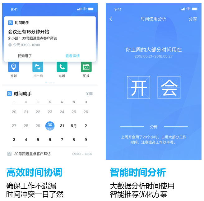 云之家產(chǎn)品總監(jiān)宋凱表示,“時(shí)間去哪了”一直是每個(gè)工作者的大焦慮。云之家V10推出“時(shí)間助手”應(yīng)用,可記錄管理個(gè)人日程并自動(dòng)提醒;通過(guò)日程共享,可實(shí)現(xiàn)團(tuán)隊(duì)成員時(shí)間安排的透明化;通過(guò)主動(dòng)“搶占”領(lǐng)導(dǎo)和同事的時(shí)間,可提升整體協(xié)作效率。