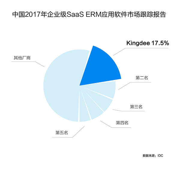 IDC另外一份報告《中國半年度企業(yè)級SaaSERM應(yīng)用軟件市場跟蹤報告》(2017下半年)還顯示,2017年全年金蝶在SaaSERM以17.5%的占有率排名,在SaaS財務(wù)云市場占有率更高達(dá)43.56%,超過第2到15名同行廠商的云收入總和。這是繼2016年后,金蝶再次取得了整體企業(yè)級SaaS、SaaSERM和SaaS財務(wù)云的三料冠軍。