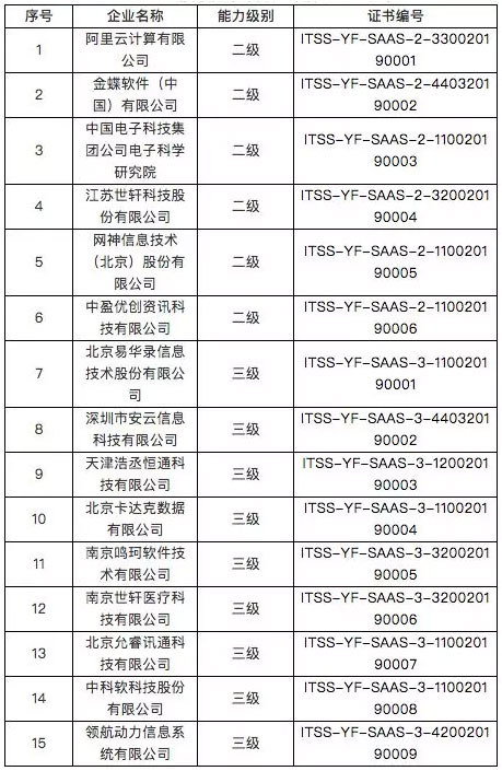 通過(guò)SaaS服務(wù)能力符合性評(píng)估的企業(yè)名單